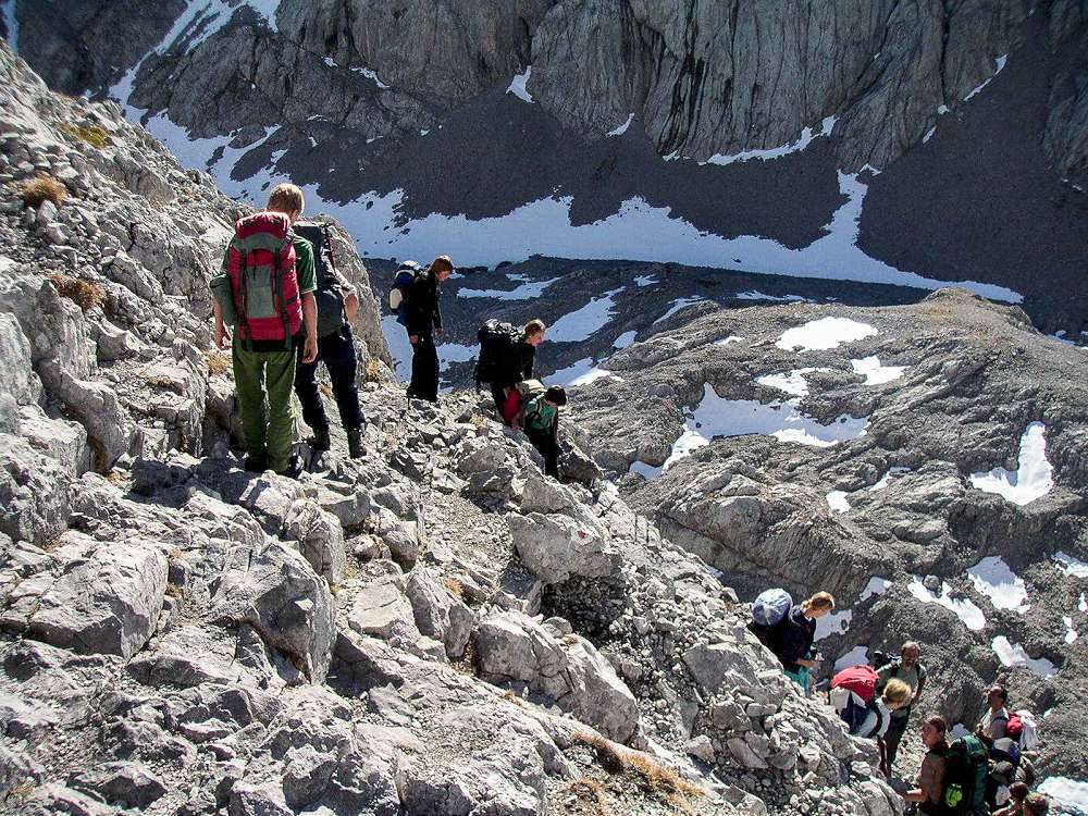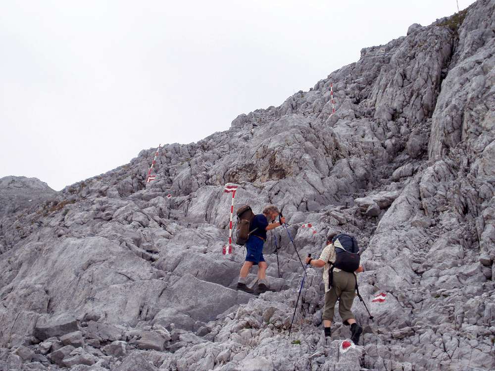 Bei schönem und sicherem Wetter bietet der Weg keine größeren Schwierigkeiten. Es ist jedoch kein Wanderweg, sondern ein alpiner Steig im Hochgebirge.