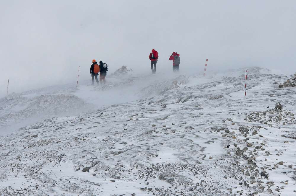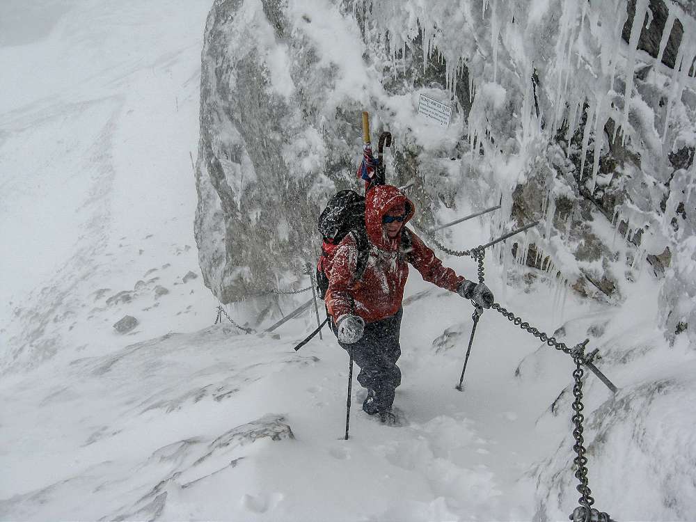Aug keinen Fall unterschätzen darf man die Wetter- und Wegverhältnisse bei einem Wetterumschwung. Wenn man im Tal noch glaubt das bisschen Regen macht nicht so viel, dann wandelt sich das in fast 3000 m Höhe schnell zu einem lebensbedrohlichen Schneesturm.
